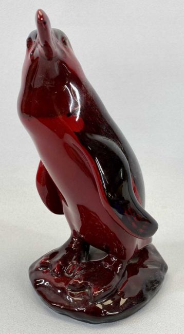 ROYAL DOULTON FLAMBE FIGURE BY NOKE OF A PENGUIN - black printed mark and signature to the base, 22.5cms H