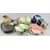 A N C POTTERY CLOCK GARNITURE - of Art Deco design, orange and green mottled glaze, clock 31cms H, pair of Mettlach lidded steins, Russian Fairy Tales, 16cms H, an Italian leaf design pottery salad bowl with servers and six leaf design oval plates, a pair of pink and white glazed fish dishes and one other, ceramic mussel shaped lidded dish, ETC