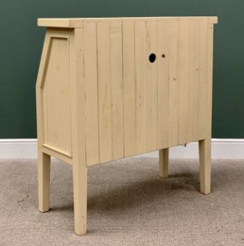 MODERN CREAM PAINTED BUREAU - having a fall front over two long drawers with turned wooden knobs, square tapered supports, 117cms H, 111cms W, 46cms D