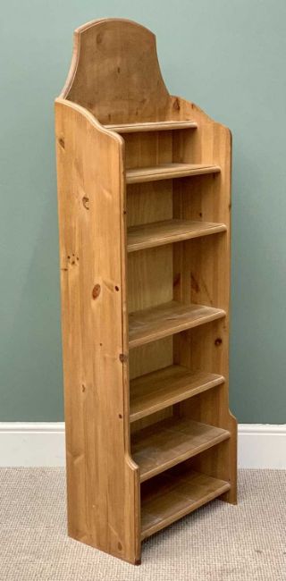 MODERN PINE OPEN BOOKCASE - with raised back, seven graduated shelves, 156cms H, 62cms W, 25cms D