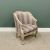 CLASSICALLY STYLED REPRODUCTION LIMED OAK EFFECT TUB CHAIR - having shaped carved detail and striped upholstery, 85cms H, 67cms W, 59cms D