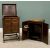 OAK GRAMOPHONE CABINET - early 20th Century, with lift-up lid over double cupboards with four doors, on barley turned supports with plain stretchers, 96cms H, 62cms W, 52cms D and a SINGER TREADLE SEWING MACHINE - in beech wood two door cabinet, 79cms H, 57cms W, 42cms D