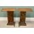 OAK SIDE TABLES - a pair, rectangular tops and columns with geometric moulding detail, on carved stepped bases, 70cms H, 54cms W, 33cms D