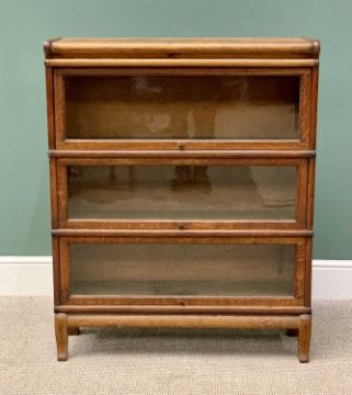 GLOBE WERNICKE TYPE OAK THREE SECTION BOOKCASE - glazed up and over doors, 109cms H, 87cms W, 27cms D