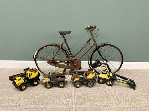 VINTAGE RALEIGH BICYCLE & QUANTITY OF VINTAGE TONKA TOYS (4)