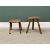 GEORGIAN MAHOGANY KETTLE STAND - having a shaped galleried top and pull-out tray, on four tapering supports with shaped "X" stretcher, 70cms H, 27 x 27cms top and TWO VINTAGE OAK RUSTIC STOOLS - 41cms H (the tallest)