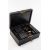 EARLY 19TH CENTURY WRITING BOX, black leather over wood, by Samson Mordan & Co., hinged top stamped 'G.F.P' and handle (damaged), opening to reveal fitted contents including two Berry's Patent inkwell and vesta box with strike and blotting booklet, together with 1826 'Ready Reckoner' with inscribed flyleaf, one of two Memoranda booklets etc., fitted Bramah lock, 14 h x 37w x 25.5 d cm