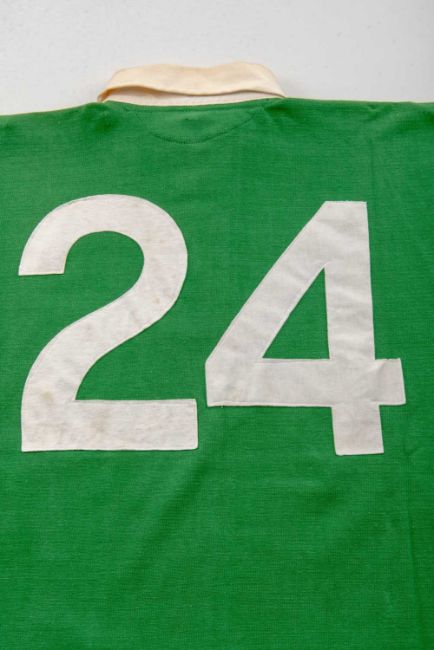 Umbro green jersey with white collars, Prince of Wales feathers and ‘PRESIDENTS XV’ embroidered to chest. White number 24 to reverse indicating a non-used squad jersey.