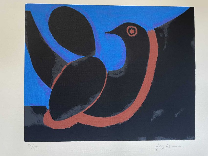 Josef Herman OBE RA. “Night” (Blue). lithograph in 7 colours issue 21/50. Donated by the Herman family.