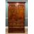 VICTORIAN WALNUT LINEN PRESS, ovolo cornice above arched doors with carved foliate spandrels, enclosing refitted internal shelves, above 4-drawers and plinth, 223h x 135w x 56cm d