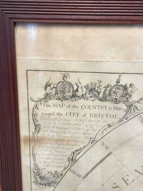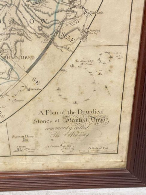 BRISTOL. Donne (Benjamin). Map of the Country 11 Miles Round the City of Bristol, 2nd edition, 1802, published W. Faden, engraved map with watercolourm, with corner spandrels including vignette view of St. Vincents Rocks and the Hotwell House, Explanation, and Druidical Stones at Stanton Drew, (PL) 94 x 93cm