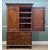 VICTORIAN WALNUT LINEN PRESS, shallow cornice aboved arched panelled doors enclosing slides, above 2 short and 2 long drawers, turned feet, 220h x 107w x 56cm d