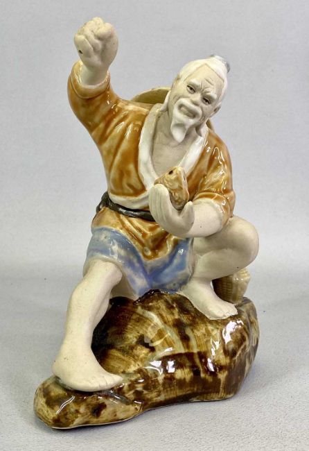 CHINESE PORCELAIN FIGURES OF GEISHA GIRLS (2) - 34cms the tallest, a rectangular lacquered panel gilded and decorated in relief with mother of pearl figures, 91.5 x 30cms, a ceramic Fo dog, 14cms H, ETC