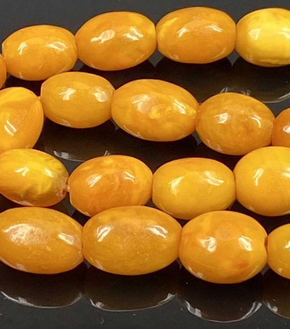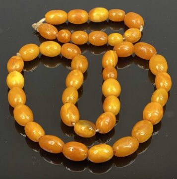 BUTTERSCOTCH AMBER BEAD NECKLACE & SIMILAR OVAL BEAD BRACELET - 69.1grms gross, 29 near uniform beads to the necklace and 11 x graduated beads to the bracelet, 19mm L the largest bead