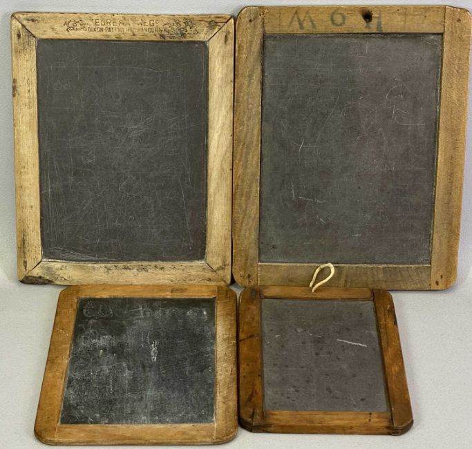 SCHOOL STUDENT'S RECTANGULAR FRAMED SLATE BOARDS (4) - late 19th/early 20th century, double sided, 26.5 x 21cms the largest
