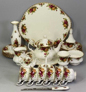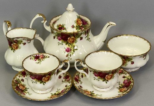 ROYAL ALBERT OLD COUNTRY ROSES TEA SERVICE FOR 6 PERSONS - including cake plate and knife, 23 pieces with other Royal Albert Old Country Rose ornaments including two Posy vases, ETC