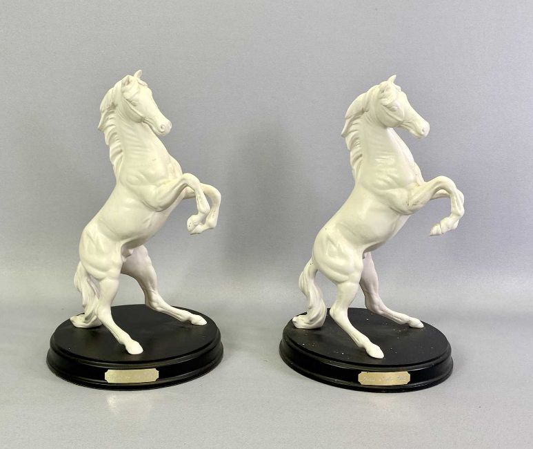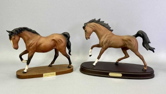 BESWICK HORSES (5) - Spirit of the Wild (2), grey matte on circular plinths, 31cms H, Spirit of Flight, chestnut matte on oval plinth, 23cms H, Spirit of Freedom, chestnut matte on oval plinth, 20cms H and Rearing Welsh Cob Model 1014, brown gloss, 27cms H