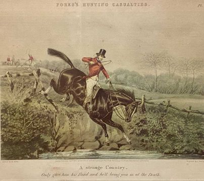 HUNTING INTEREST a collection of prints and engravings, mainly 19th century including Fore's Hunting Casualties, a Mutual Determination plate 1 and a Strange Country plate 2, 29.5 x 40cms, a pair Road Riders or Funkers and The Few not Funkers, 39 x 84cms, The Devon and Somerset (over Badgworthy Water), 36.5 x 62.5cms, The End of a Good Day, 36 x 39.5cms and ten others (16 in total)