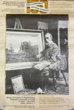 RICHARD GAY SOMERSET (British 1848 - 1928) oil on canvas - landscape with shepherdess and flock of sheep, signed lower right, 29.5 x 49.5cms, a poster 'Centenary Celebration Royal Cambrian Academy of Art in Wales' 1882 - 1982 showing Richard Gay Somerset, one of the Academy's first members, (unframed), 62.5 x 43cms