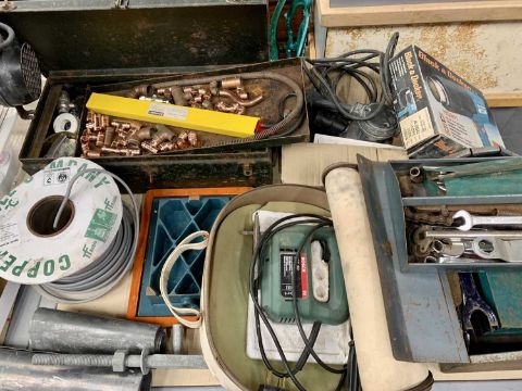 VINTAGE & LATER PLUMBING TOOLS, EQUIPMENT, WOODWORKING ELECTRICALS, barometer, pond pump, easy green seed sprouter and a Faithfull aluminium folding step up platform, E/T