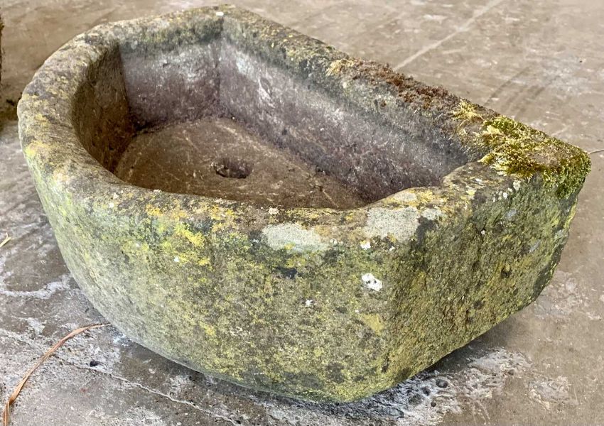 TWO STONEWARE GARDEN TROUGHS / PLANTERS, 20cms H, 53cms W, 38cms D and 24cms H, 42cms W, 35cms D