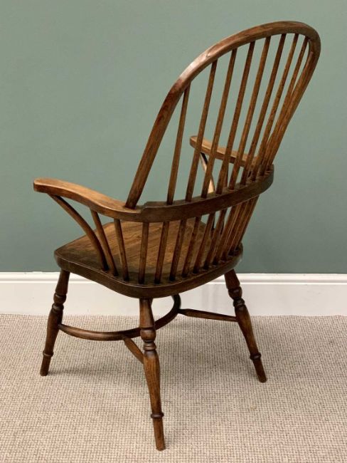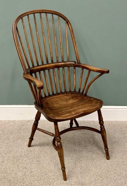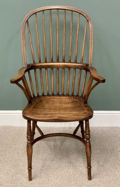 GOOD QUALITY REPRODUCTION WINDSOR HALL CHAIR with crinoline stretcher, 113cms H, 65cms W, 42cms D