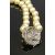 SINGLE STRAND CULTURED PEARL NECKLACE WITH DIAMOND CLASP - 61cms overall L open, 31cms L closed, the unmarked/untested white metal clasp having a single central pearl surrounded by 12 claw mounted round diamonds and a further surround of 28 baguette cut diamonds, estimated total diamond weight, 1.64cts, the pearls individually knotted and all appear of a near uniform size, 66 round pearls approx 7mm each, 63.3grms gross, pearls untested, presumed cultured