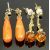 LADY'S VINTAGE DROP EARRINGS, 2 PAIRS - a 9ct gold stamped pair, the drops formed as twisted flowers, each terminating with an amber bead, 32mm drop length, 4.2grms gross, the other pair unmarked having coral drops with gold colour leaf caps set with small diamonds, approx 38mm drop length, 7.1grms gross