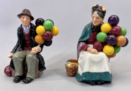 ROYAL DOULTON FIGURINES - Sweet Dreams HN2380, School Marm HN2223, Silk and Ribbons HN2017, the Balloon Man HN1954, the Old Balloon Seller HN1315, and Coalport Ladies of Fashion figures - Jenny, English Rose 'Jessica' and two other figurines