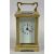 SMALL GILT BRASS CASED CARRIAGE CLOCK - with four glass panels, white enamel dial with black Roman numerals, folding handle, 9.5cms H