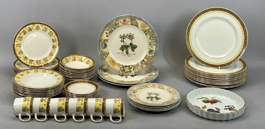 WEDGWOOD INDIA PATTERN DINNER & TEA SERVICE - approx 40 pieces, various cocktail glasses and a selection of silver plated cutlery