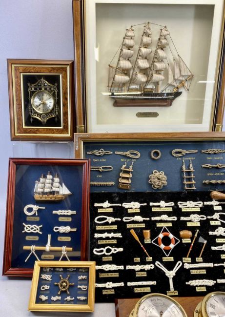 MARITIME RELATED COLLECTABLES - to include a diorama of the Cutty Sark, framed knot collections, barometer, ETC