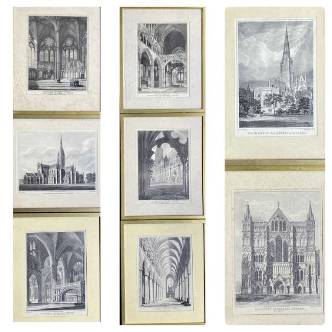 E MACKENZIE and H LE KEUX engravings (8) - various views of Salisbury Cathedral in similar frames, 42 x 34cms overall