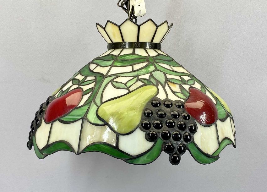 A FINE TIFFANY STYLE FRUIT DECORATED CEILING LIGHT - 35cms diameter