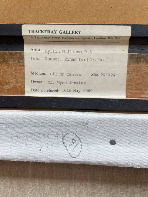 ‡ SIR KYFFIN WILLIAMS RA oil on canvas - entitled verso 'Sunset, Dinas Dinlle, No.2' on Thackeray Gallery label, 60 x 60cmsProvenance: private collection CardiffComments: original frame, ready to hang