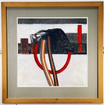 ‡ GEORGE LITTLE pastel and acrylic - entitled verso 'Industrial Composition, Girders', signed, 52 x 52cmsProvenance: private collection Vale of Glamorgan, purchased from Barry Library 'Art Central' exhibition 2014Comments: framed and glazed, no problems