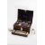 EARLY 19TH CENTURY MILITARY DISPATCH BOX, green leather over wood, by 'J.A.B. Punton, 13 Piccadilly', embossed and named lid to 'G.F. Paschal', velvet lined interior, containing a small collection of Georgian and later military brass buttons with hand written paper note (later mounted on card) indicating regiments and dates of some buttons, Bramah lock and key, 12.5h x 37w x 16.5cm dProvenance: Lieut-Col. George Frederick Paschal, 70th Reg. Foot, veteran of both Peninsular War and Waterloo. Thence by descent.G.F. Paschal entered the army as Ensign in 1812 serving with 2nd line battalion of the King's German Legion from 1813-14 including at the Battle of Nive and Nivelle, and the investment of Bayonne. In 1815 he was attached at Quatre Bras to Sir Henry Clinton on 17th June and at the Battle of Waterloo. He became Captain in 1826, Major in 1841 and Lieut-Col. in 1851. He received the Waterloo Medal, Military General Service Medal and medal with two clasps and the Hanovarian War Medal. He also served command of auxiliary police for the Great Exhibition of 1851 and during the unrest that followed the passing of the Common Lodging Houses Act of 1851.Comments: handle missing, generally scuffed. 19TH CENTURY ROSEWOOD TOILETTE BOX, hinged lid with inset gilt brass plaque with engraved initials 'GEP', purple leather and velvet interior, fitted with Old Sheffield Plate lidded cut glass bottles and boxes, all similarly monogrammed, later mother of pearl handled accessories, fitted lower drawer, ebony corner mouldings (one loose, one missing), key, 16.5 h x 30.5 w x 22.7 d cm, with associated Morocco leather folding mirror, 22.5cm h (2)Comments: top split, veneer splits, internal mirror missingProvenance: Lieut-Col. George Frederick Paschal, 70th Reg. Foot, veteran of both Peninsular War and Waterloo. Thence by descent.G.F. Paschal entered the army as Ensign in 1812 serving with 2nd line battalion of the King's German Legion from 1813-14 including at the Battle of Nive and Nivelle, and the investment of Bayonne. In 1815 he was attached at Quatre Bras to Sir Henry Clinton on 17th June and at the Battle of Waterloo. He became Captain in 1826, Major in 1841 and Lieut-Col. in 1851. He received the Waterloo Medal, Military General Service Medal and medal with two clasps and the Hanovarian War Medal. He also served command of auxiliary police for the Great Exhibition of 1851 and during the unrest that followed the passing of the Common Lodging Houses Act of 1851.