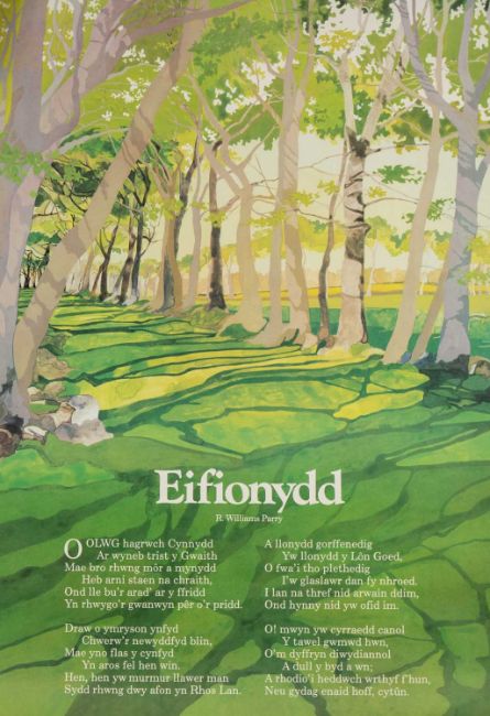 WELSH ARTS COUNCIL ORIGINAL POSTERS, Gomer Press, 1970s including ‘The Seagull’ (‘Yr Wylan’) by Dafydd ap Gwilym translated by Glyn Jones; ‘Cofio’ by Waldo Williams; ‘Hon’ by T. H. Parry Williams and ‘Eifionydd’ by R. Williams Parry (4)Provenance private collection mid Wales, consigned via our Carmarthen office