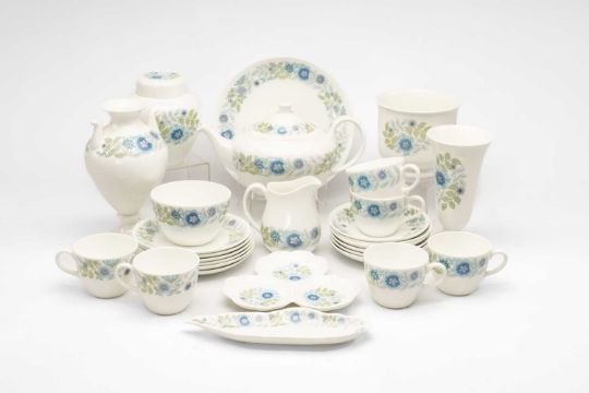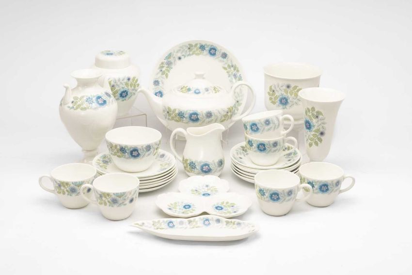 TWO BONE CHINA SERVICES, comprising Wedgwood 'Clementine' tea set and Coalport 'Ming Rose' coffee set, both with additional items ensuiteProvenance: private collection West Wales.Please note: not all pieces have been photographed
