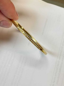 18CT GOLD DIAMOND SET HINGED BANGLE, stamped '750', 9.3gmsProvenance: deceased estate CarmarthenshireComments: good overall, all stones present, minor wear and tear commensurate with ageCondition Report:inside diameter is 60mm