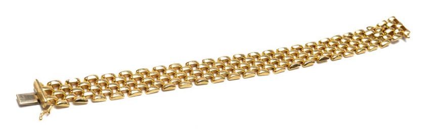 14K GOLD BRICK LINK BRACELET, having integrated box clasp, stamped '14K' and 'Italy', 19cms long, 15.2gmsProvenance: deceased estate CarmarthenshireComments: one link damaged, clasp working