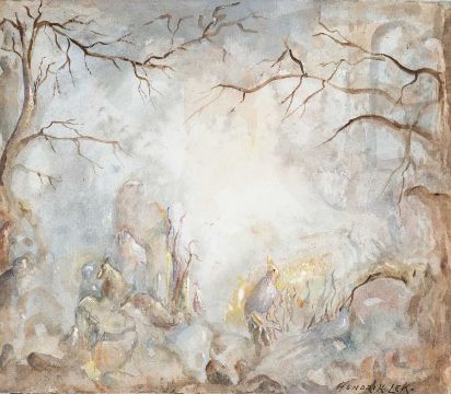 ‡ HENDRIK LEK (1903-1985) oil on card - untitled, mountainous landscape with lake, signed, 16 x 22cms together with another of a woodland by the same hand, signed, 20.5 x 24cms (2)Comments: framed & glazedAuctioneer's Note: Hendrik Lek, Belgian father of Welsh artist Karel Lek MBE
