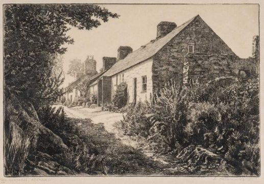 ENOCH FAIRHURST (British, 1874-1945) etching - 'Old Cottages, Abersoch', signed in pencil, (pl) 19 x 27.5cms together with, JOSEPH KNIGHT (British, 1838-1909) etching - 'George Court', signed in plate and margin, (pl) 29.5 x 21cms, THOS. AGNEW label en verso (2)Comments: both framed and glazed