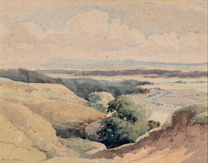 FRANK BAKER (1873-1941) watercolours - Oak Trees and Landscape, signed, 21 x 31cms and 25 x 32cms respectively (2)Provenance: private collection south WalesComments: good, ready to hang