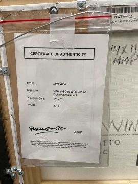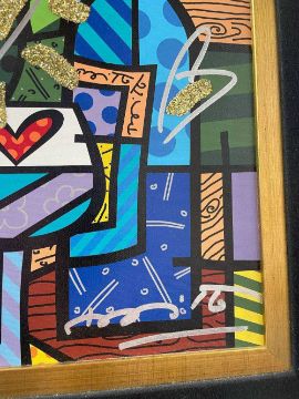 ‡ ROMERO BRITTO (Brazilian, b. 1963), diamond dust and oil pen on digital canvas print - 'Love Wine', signed, With COA 35 x 27cmsProvenance: private collection CardiffComments: excellent, ready to hang.