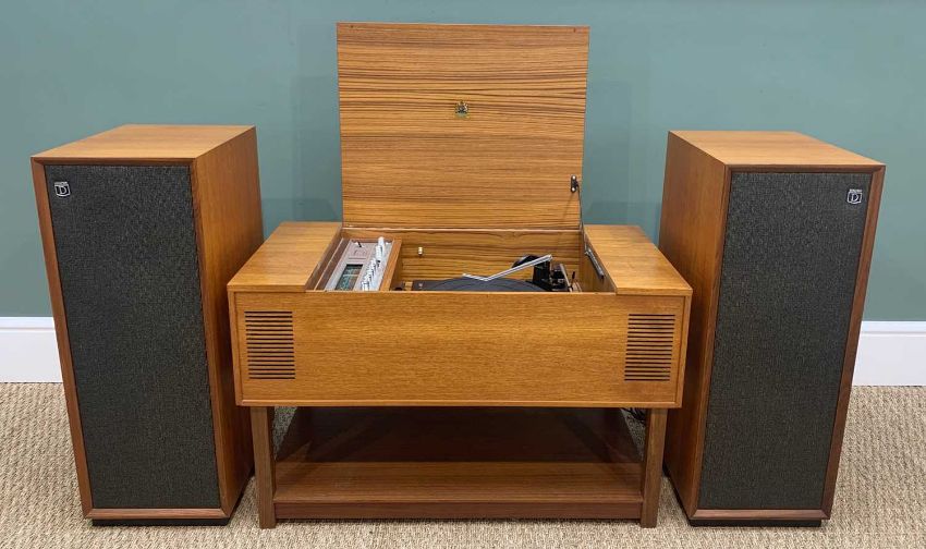 MID-CENTURY TEAK DYNATRON STEREOPHONIC REPRODUCER, model RG69, fitted with Garrard 2025TC turntable and pair Dynatron LS2014 speakers (3)