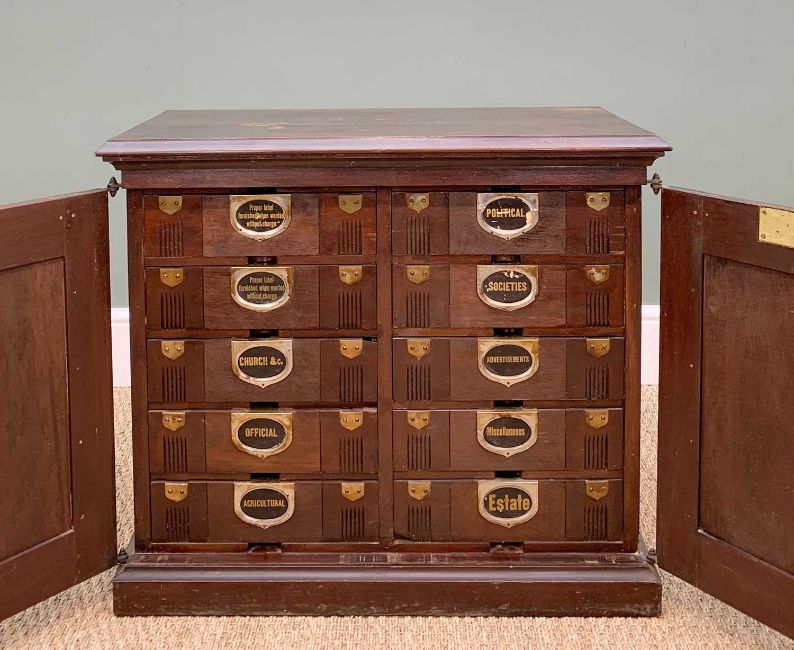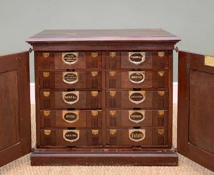 AMERICAN AMBERG'S PATENT FILING CHEST, pair of doors enclosing labelled drawers each containing cardboard filing wallet, 66h x 77w x 36cms d