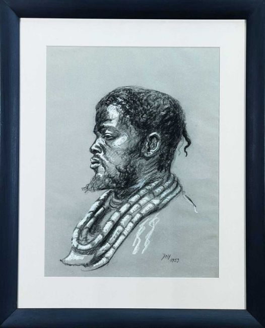 ‡ *DAY - two studies, charcoal on paper - head portrait of Durban labourer, inscribed '9th March 1953 Durban' signed, 59 x 45cms, together with head portrait of Zulu man, signed, dated 1953, 60 x 45cms (2)Provenance: Private collection West Wales, consigned via our Cardiff officeComments: framed and glazed