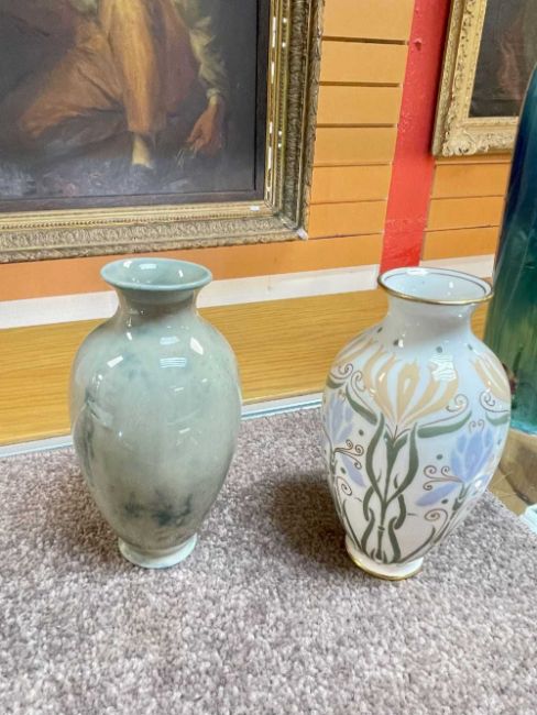 DOULTON CERAMICS comprising Lactolian ware vase and plate, two Luscian ware vases, four small Titanian ware vases and a green candlestick (9)Provenance: collection of the late Dr Ronald Austin of SwanseaComments: viewing recommended
