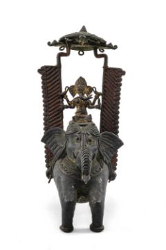 DHOKRA METAL ALLOY PROCESSIONAL ELEPHANT, India, carrying a statue of the Hindu deity Ganesha beneath canopy, traces of paint, 23.5cms hProvenance: consigned form west Wales.